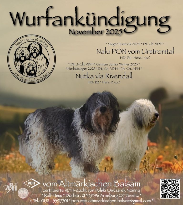 Nachdem Nutka im letzten Jahr so einige Austellungen mit höchsten Bewertungen und Auszeichnungen absolviert hat, haben wir uns entschlossen, sie bereits jetzt belegen zu lassen. Mit Vito Corleone Pon von der Bismarkwarte haben wir einen Rüden für sie ausgewählt, der uns zum einen sehr vertraut ist und zum anderen alles an Rassetypischen Merkmalen mitbringt, die wir uns für Nutka gewünscht haben.
