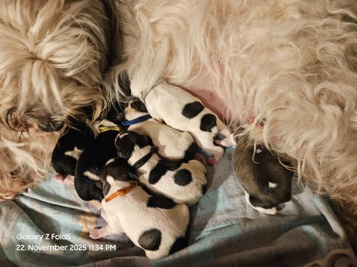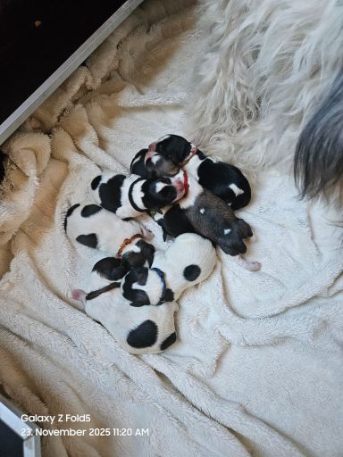 Am 22.11.2025 hat Nutka 7 gesunden Welpen das Leben geschenkt. Es sind 4 Mädchen und 3 Jungs geboren