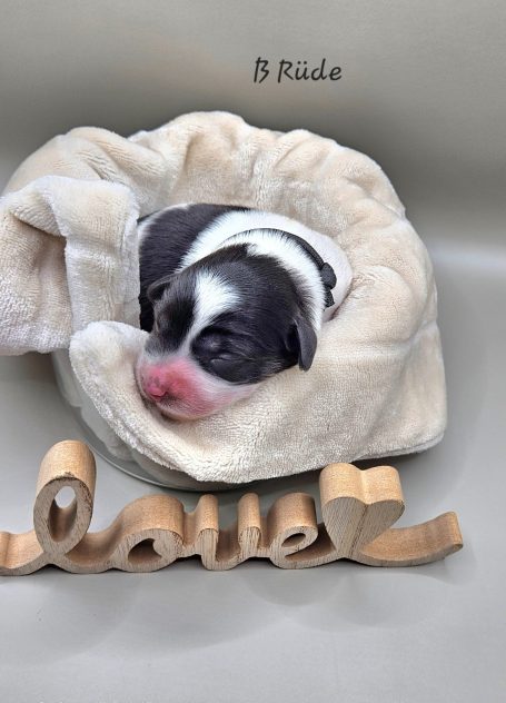Wir haben nun 9 Welpen in den Farben Schwarz mit weiß und Agouti mit weiß.